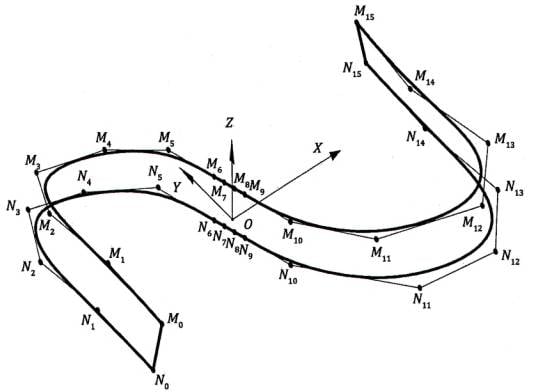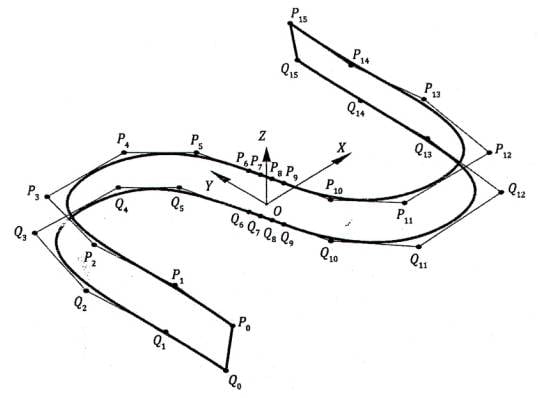 Chú thích 1: Một đường cong NURBS được xác định bởi bậc của nó, một tập hợp các điểm điều khiển có trọng số và một vectơ nút. Bậc của đường cong xác định số lượng điểm điều khiển lân cận ảnh hưởng đến một điểm bất kỳ trên đường cong. Các điểm điều khiển xác định hình dạng của đường cong, và trọng số của mỗi điểm thay đổi theo tham số điều khiển. Vectơ nút là một dãy giá trị tham số quyết định vị trí và mức độ ảnh hưởng của các điểm điều khiển lên đường cong NURBS.