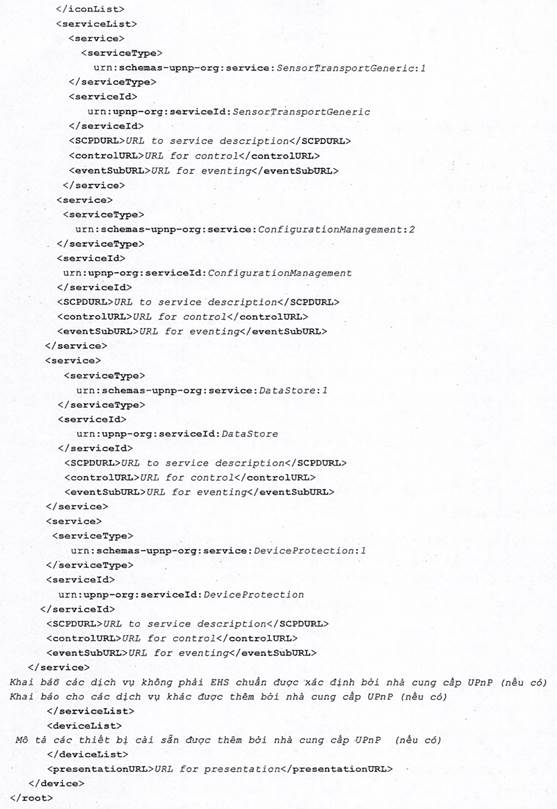 Bất cứ khi nào nhà cung cấp tạo ra các biến trạng thái, các hoạt động và các đặc tính xác định nhà cung cấp thì các tên được ấn định và biểu diễn XML phãi tuân theo các quy ước đặt tên và quy tắc XML như đã quy định trong kiến trúc thiết bị UPnP [1], điều 2.5 “Mô tả: M rộng nhà cung cấp không theo chuẩn”.