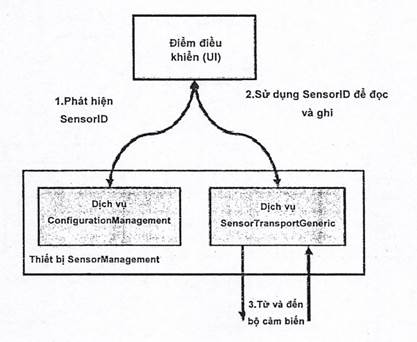 1. Điểm điều khiển (CP) sử dụng dịch vụ quản lý cấu hình của thiết bị IoTManagementandControl để nhận SensorlD của thiết bị cm biến được sử dụng để đọc và ghi các thao tác vận hành.